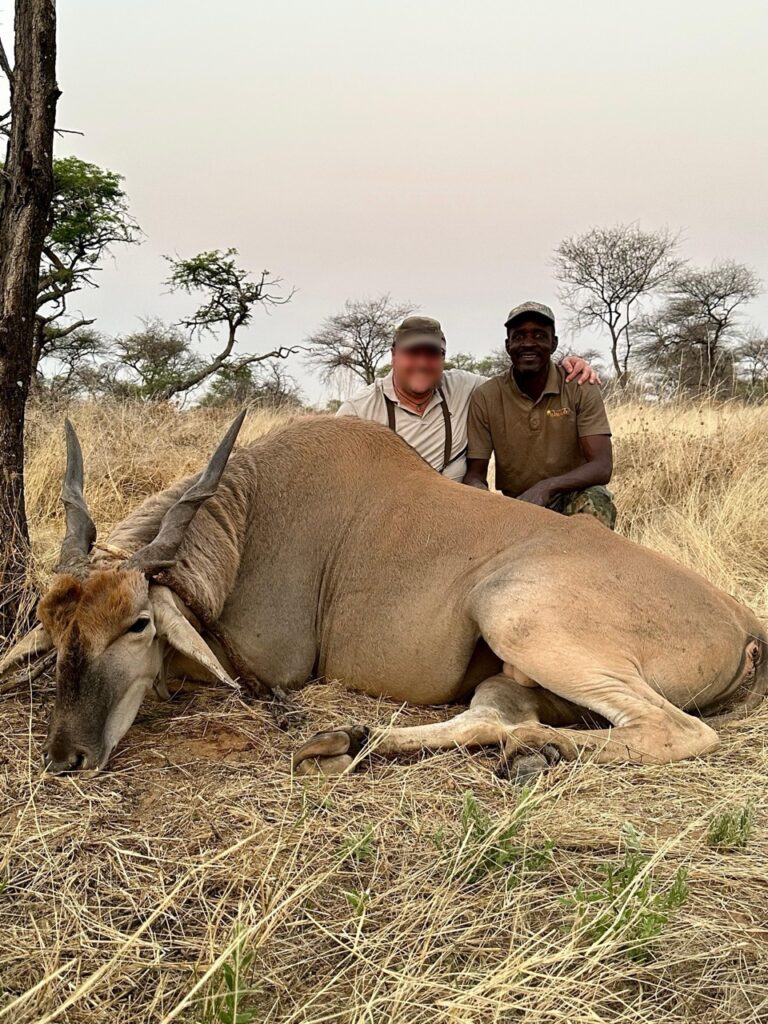 Wir waren wieder zu dritt….Paulus, ich, Bianka so war die Reihenfolge…. am Rand der Fläche dicht an dicht pirschend unterwegs. Der gesuchte Bulle kam etwas weiter vorne so dass die Distanz ca. 100 m war. Er betrat die Fläche und zog breit von links auf den Weg. Der Schießstock stand bereits, die Waffe lag ruhig darauf und an meiner Schulter… Paulus meinte „schießen wenn ich sage“ Die gewaltige Antilope wurde von dem Jagdführer als sehr alt angesprochen. Jetzt verhofft das riesige Stück Wild und äugt zu uns. In diesem Moment gibt Paulus den Bullen mit einem „ jetzt schießen“ frei. Der Schuss bricht. Das Absehen stand ruhig auf dem unteren Bereich der Kammer. Kugelschlag. Es ist ein deutliches Zeichnen mit einer Art Bocksprung des alten Recken zu sehen. Er geht nach rechts ab und verschwindet nach wenigen Metern aus unserem Sichtfeld.